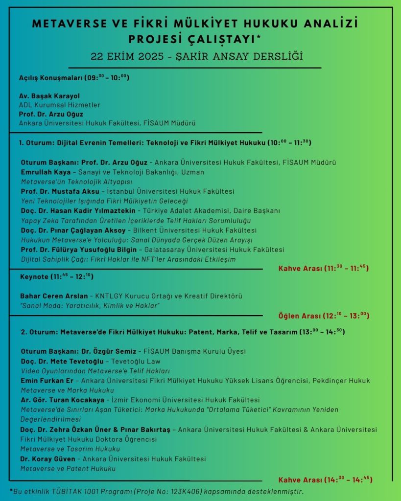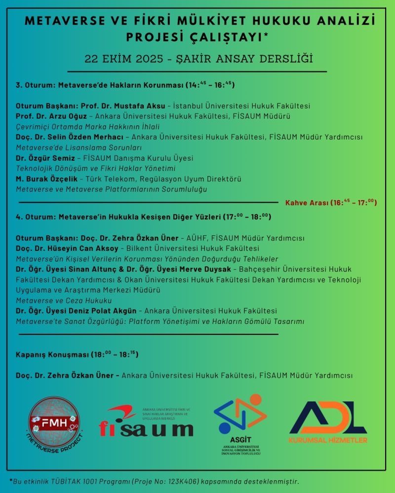 İş birliğimizin ilk adımı olarak, FİSAUM’un FMH: Metaverse Project Projesi çıktıları kapsamında düzenlediği çalıştayda, merkezimizi temsilen Merkez Müdürü Dr. Öğr. Üyesi Merve Duysak “Metaverse ve Ceza Hukuku” başlığı ile programında konuşmacı olarak yer almıştır. Bu davetleri ve nazik iş birlikleri için Sayın Prof. Dr. Iur. Arzu Oguz, Sayın Doç. Dr. Zehra Özkan ve FİSAUM ekibine içten teşekkür ederiz. OLATECHUB ev sahipliğinde gerçekleştireceğimiz ortak etkinliklerle bu verimli iş birliğini sürdürmeyi heyecanla bekliyoruz.