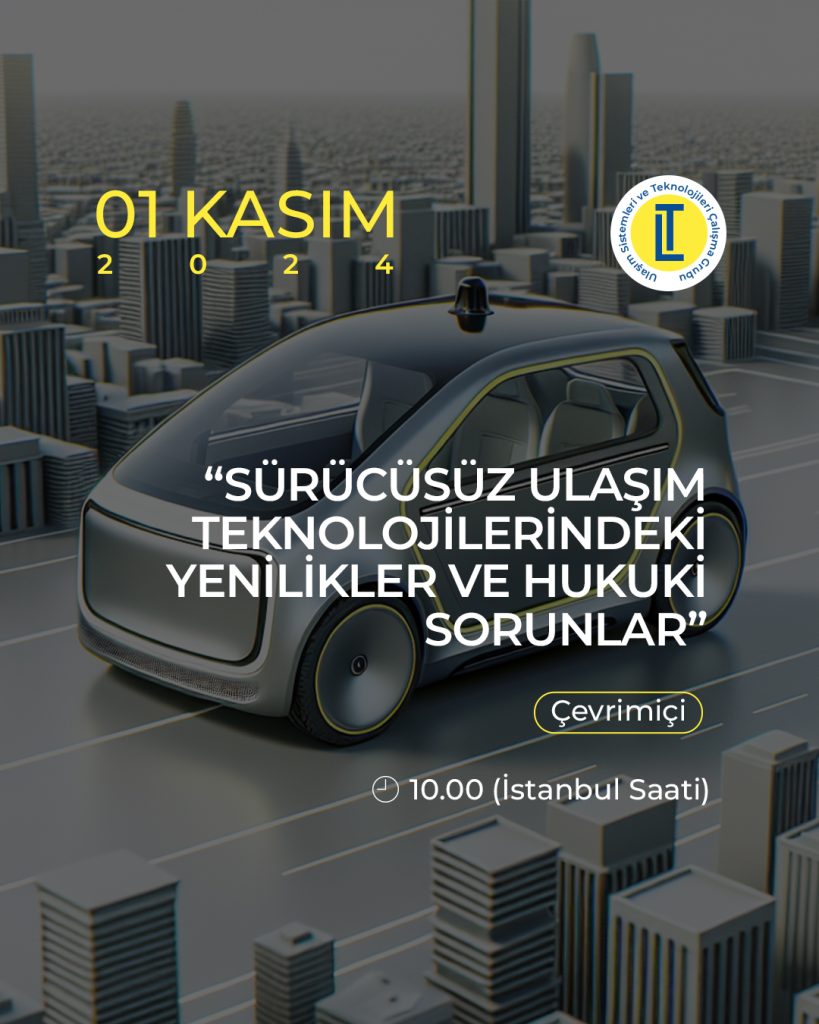 Çevrimiçi panelimiz 1 Kasım 2024 tarihinde üniversitemiz O’Learn Platformunun desteği ile gerçekleştirilmiştir. Yönetim Kurulu ve Ulaşım Teknolojileri Çalışma Grubunun planlama ve organizasyonu ile önemli isimler bir araya gelmiştir. 1 Kasım 2024 tarihinde düzenlenen “Sürücüsüz Ulaşım Teknolojilerindeki Yenilikler ve Hukuki Sorunlar” başlıklı çevrimiçi etkinlik, sürücüsüz ulaşım teknolojilerindeki gelişmeleri ve bu teknolojilerin hukuki boyutlarını derinlemesine tartışma fırsatı sunmuştur.